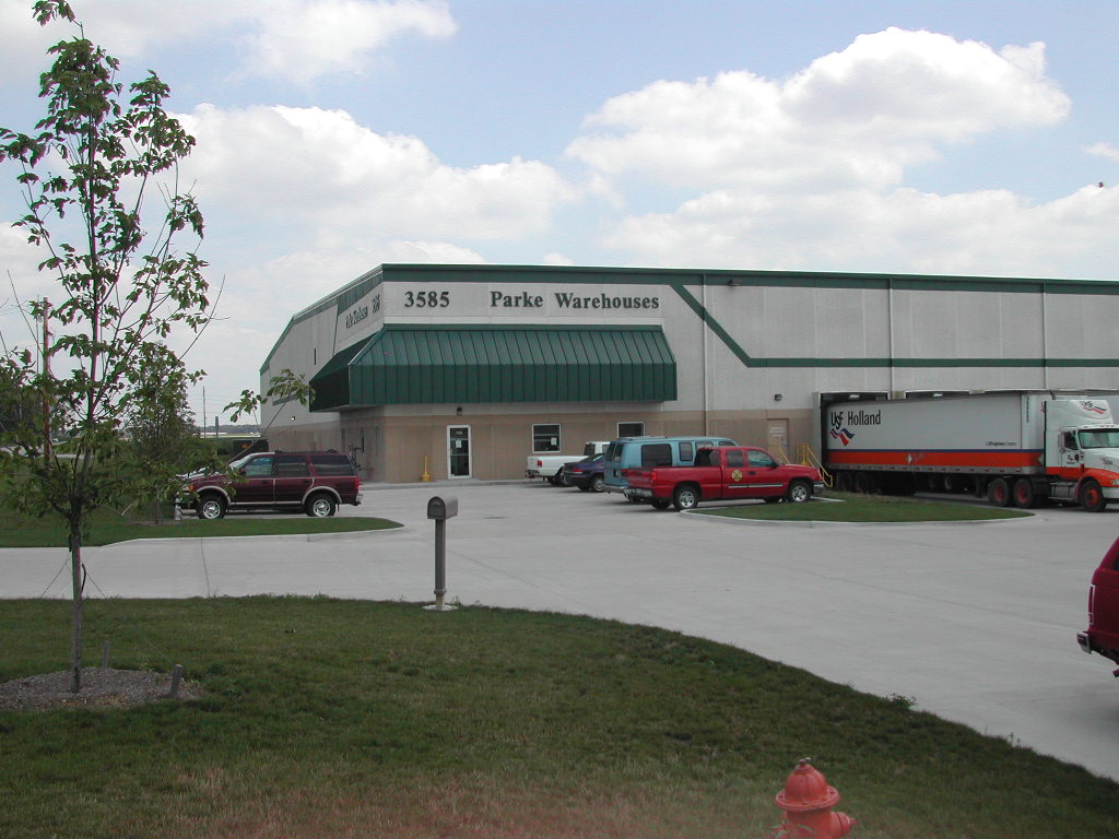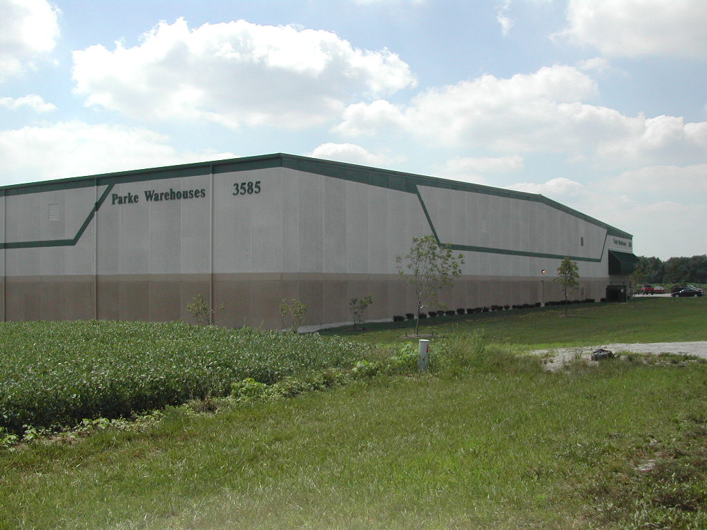 Material StorageParke WarehouseParke 3585 Mound road: Prefabricated concrete wall panels, with a metal roof. |